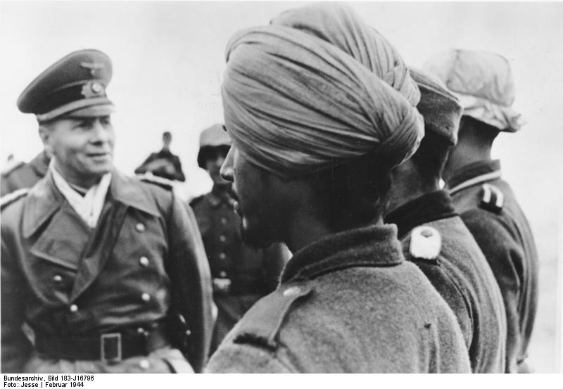 Zentralbild: II. Weltkrieg 1939-45. Im besezten Frankreich, Februar 1944. Generalfeldmarschall Erwin Rommel besichtigt eine Einheit der “Indischen Legion”. (Die indische Legion wurde aus in Europa lebenden Indern gebildet)